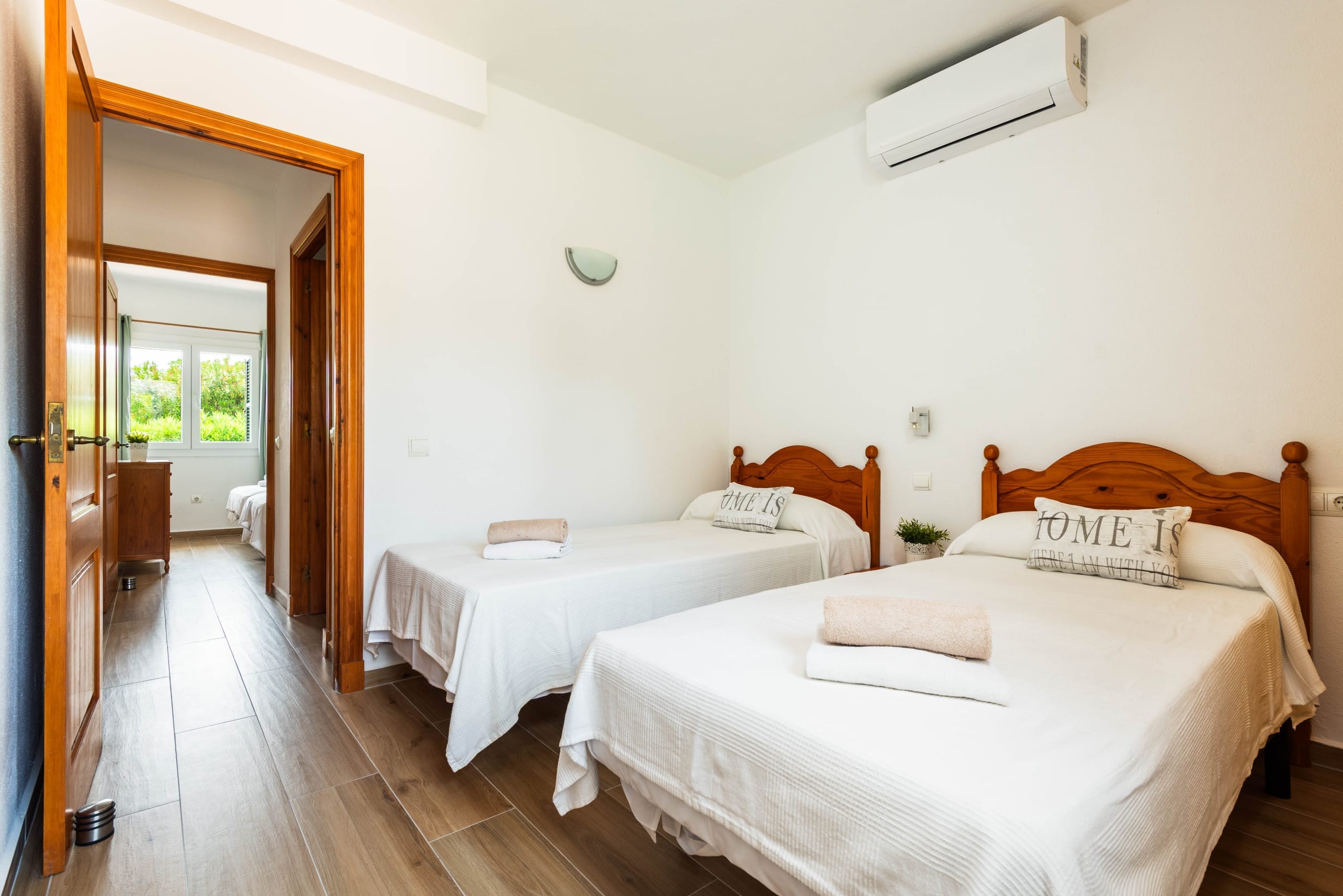“Villa Juana” has 4 bedrooms and 2 bathrooms that are distributed over two floors. On the ground floor there is the living room, kitchen, 2 bedrooms and a bathroom, on the upper floor there are 2 more bedrooms and the other bathroom. All bedrooms have air conditioning and new 2m long beds .The house has a large garden, a barbecue area with a table and benches and a private pool.