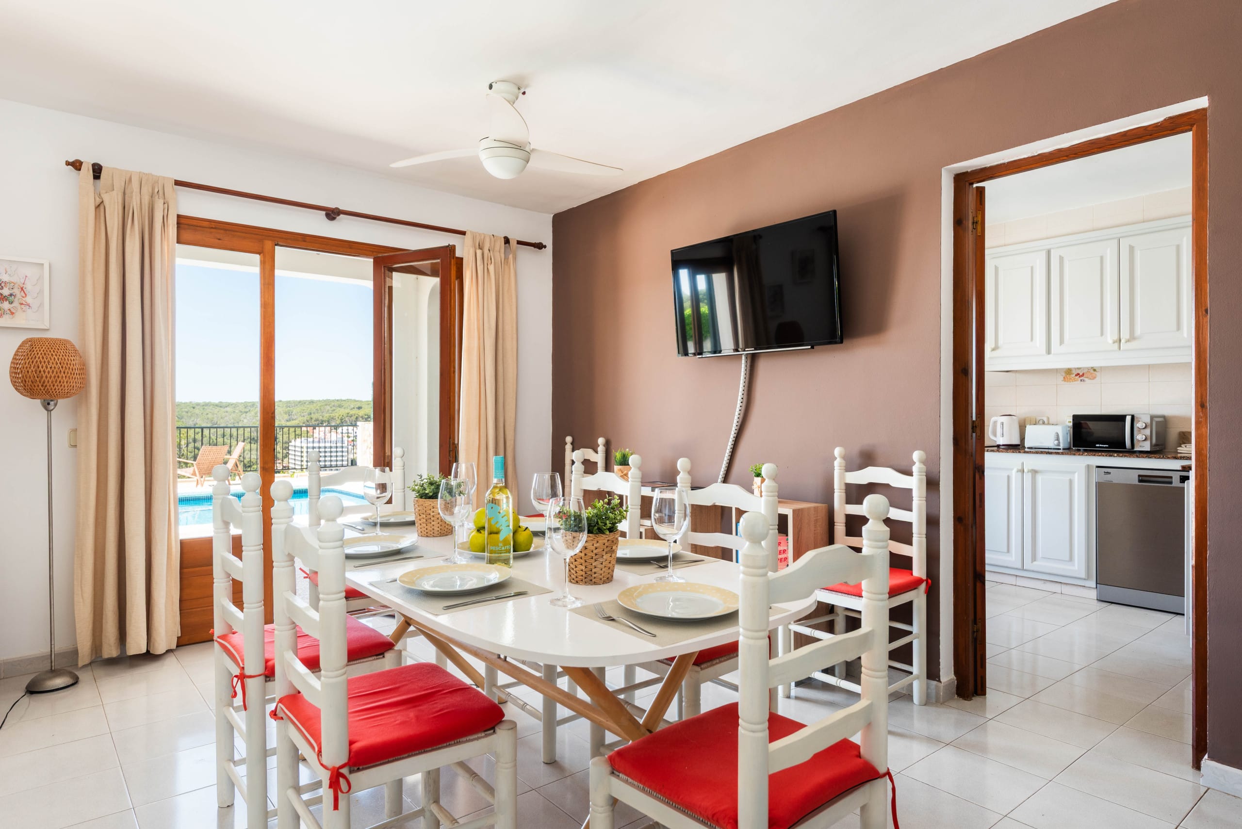 As there are more and more families travelling with various generations or larger groups of friends who want to enjoy together the experience of spending their holidays in a villa with a garden and private pool, combining the two houses you can achieve the ideal constellation, which is being next to each other having at the same time your privacy and each one their own outdoor area and pool. The same as “Acantilado”, “Vista Alegre” is situated in a quiet side street of beautiful Cala Galdana, right on the edge of the cliffs, with a spectacular view over the entire bay, the beach, the sea and the pine forests. The garden with its beautiful pool, equipped with sun loungers, table and chairs, invites you to enjoy nature and the stunning views directly on site and to spend a lot of time in it.